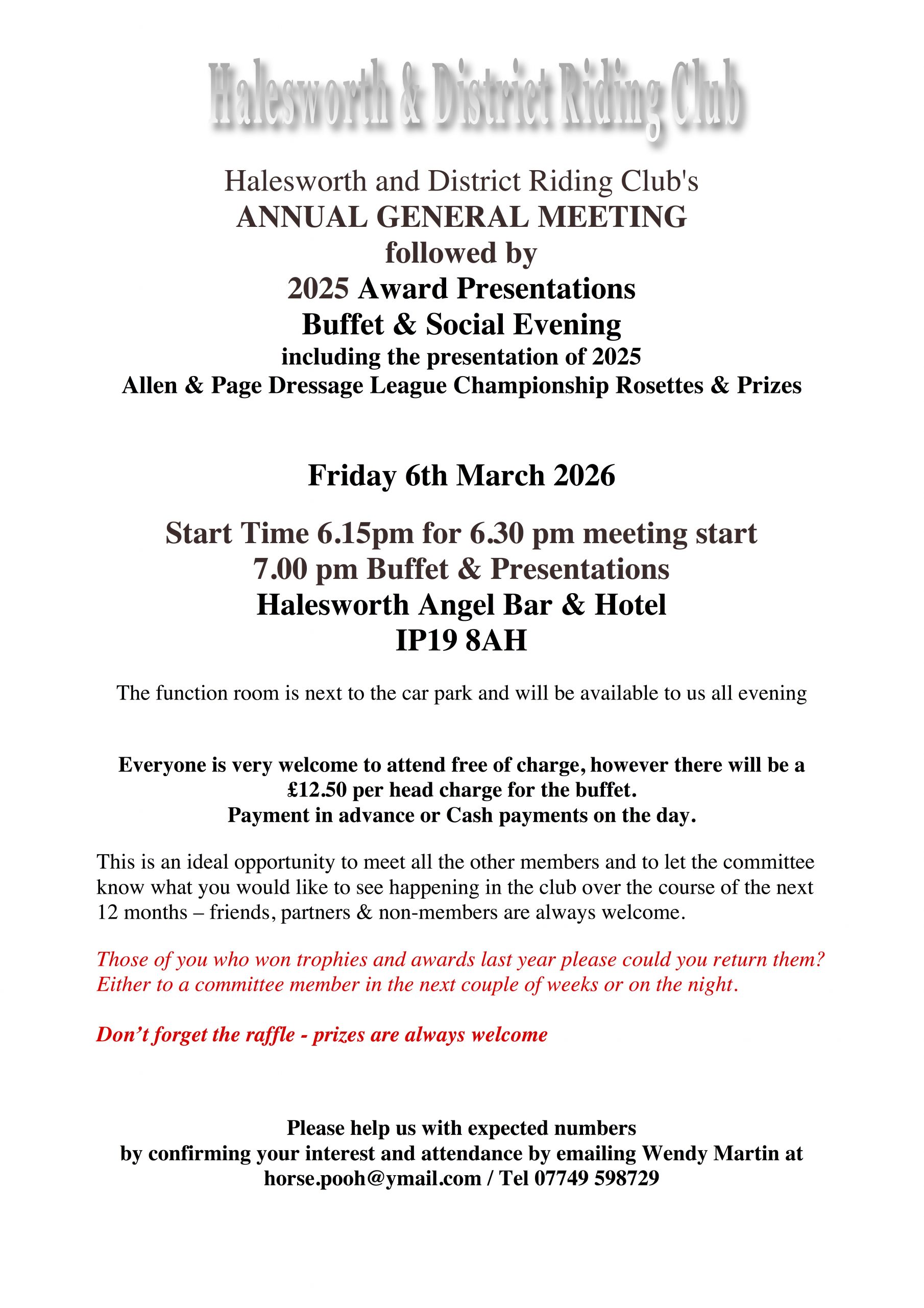 by confirming your interest and attendance by emailing Wendy at horse.pooh@ymail.com / Tel 07749 598729