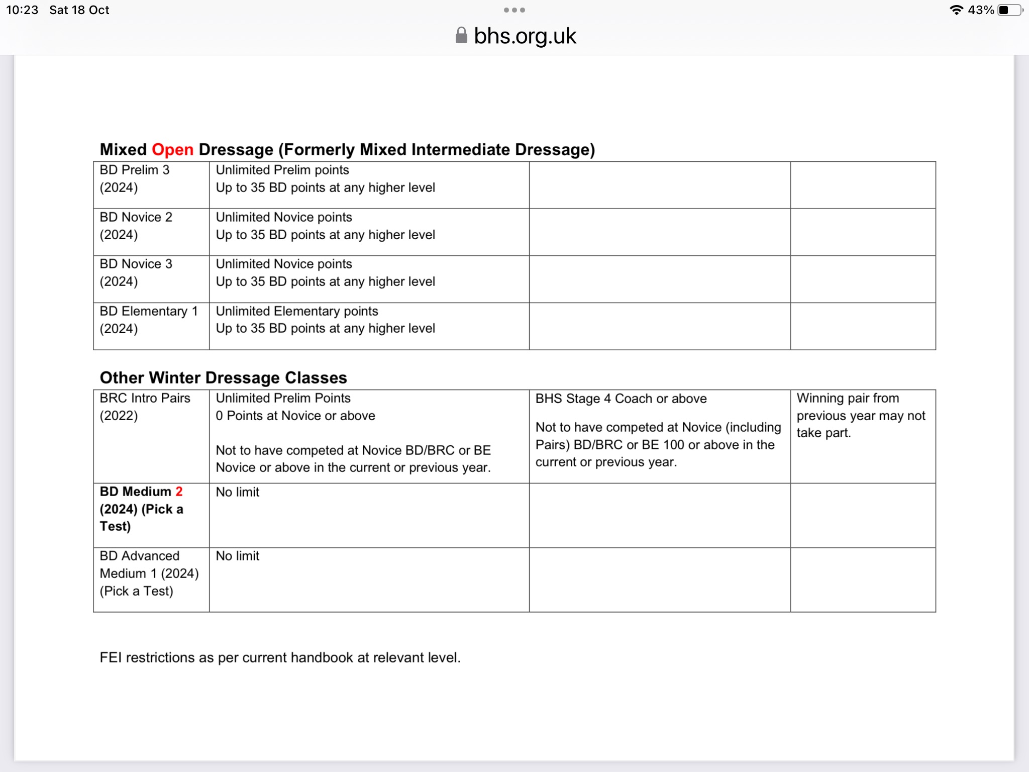 Intermediate & Open Winter Dressage Area 14 British Riding Clubs Qualifier